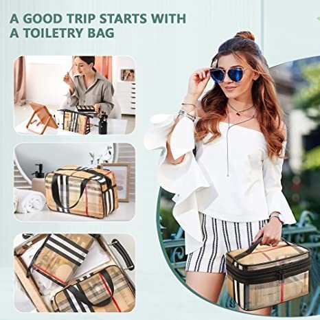 4.WATER-RESISTANT & EASY TO CARRY: The travel toiletry bag is waterproof which the things stay safe inside. A makeup bag is convenient to pack and carry in a handbag, backpack, or luggage. And suitable for overnight stays, long-distance trips, gym showers, and outdoor activities. Keeps them well organized and protect them from water and dust. Easy to clean, it is reusable.