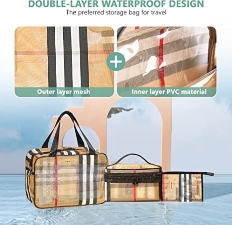 2.SUPERIOR MATERIAL: The outer layer of the toiletry bag is made of superior TPU mesh material, and the inner layer is made of transparent PVC material. Design with a large opening zipper allows you to see what is stored and where it is and makes it convenient to pack and save time to find what you need.